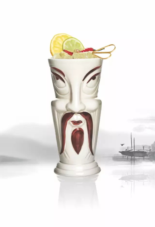 神秘燈的出處是Bob Esmino在1962年寫的筆記,當時他是芝加哥喜來登酒店Kon-Tiki Ports餐廳的酒吧經理。同樣是芝加哥人的我發現這么做很有意思:一個生活在北京的芝加哥提基調酒師嘗試著各種異域原料,對誕生在60年代早期的一款提基雞尾酒進行改編,而這款雞尾酒的創始人也來自芝加哥。我用好幾種白酒做了多次試驗,最終找到了我需要的那種提基和中國烈酒之間的緊密聯結——美國白酒。半盎司(15ml)以荔枝、火龍果和辣椒浸漬的火龍果美國白酒絕對是神秘燈關鍵原料的理想搭檔,最終的成品是一款清新、果味濃郁的雞尾酒,余味帶著鮮明、令人興奮的辣椒特質。裝酒的杯子是一個很特別的“傅滿洲杯”,標志性的長八字胡十分搶眼,再配上檸檬、青檸和一只新鮮辣椒作裝飾,對提基文化的致敬圓滿完成!雞尾酒的名字應和了西方世界對東方的古老迷戀,同時也遵從了中國人用符咒和神水來消除厄運(并祈求好運)的傳統。我們確實獲得了好運——它已經被正式列入酒單。