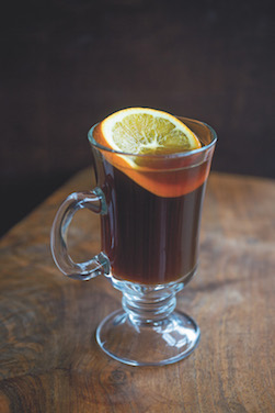將除了阿夸維特、黑櫻桃利口酒和橙圈的所有原料放入真空低溫袋中,用60攝氏度的溫度烹調(diào)60分鐘。濾入帶蓋的瓶子,密封并將置于水浴中,直至達到上桌效果。配上橙圈裝飾,趁熱享用。