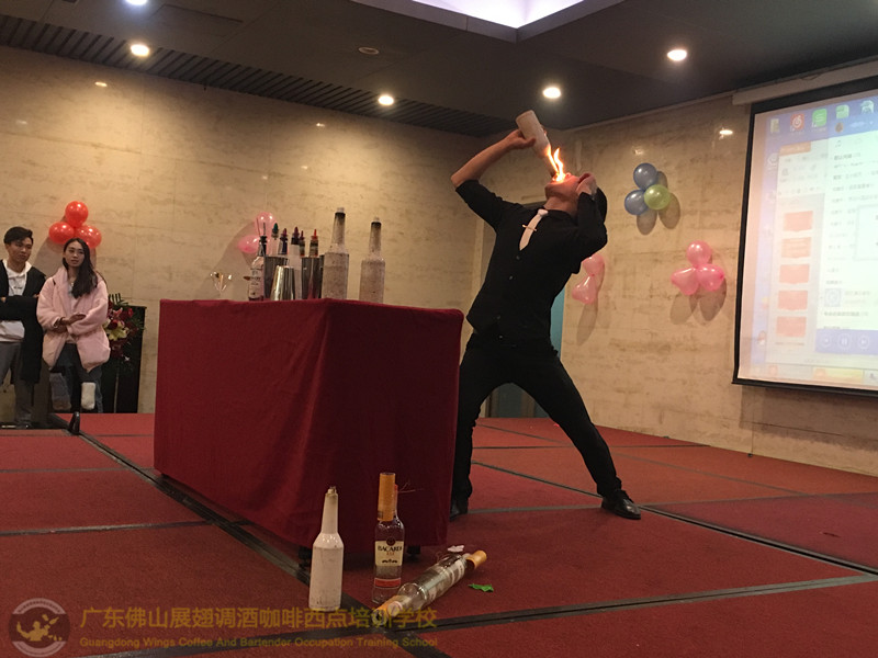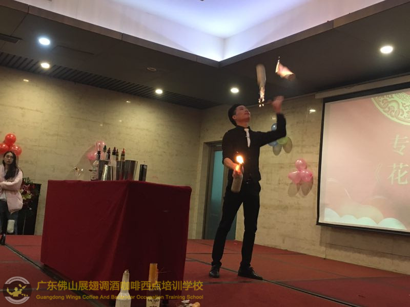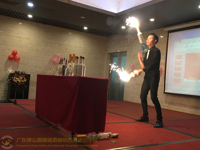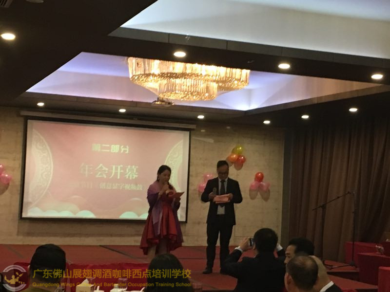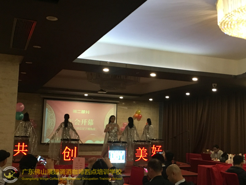 2018年1月26日佛山展翅調酒咖啡西點培訓學校的調酒師朱歡洪再次受邀出席廣州大本營貿易有限公司的迎春晚會,并擔任活動現場花式調酒演出嘉賓。如果你想成為一名優秀的花式調酒師,要不斷的實踐、學習、讓自己擁有更豐富的知識。當你的技術得到認可的時候,你才真正的贏得了他人的尊重http://www.xunxwg.cn 接下來,讓我們一起回顧一下當天晚上現場的氣氛吧!