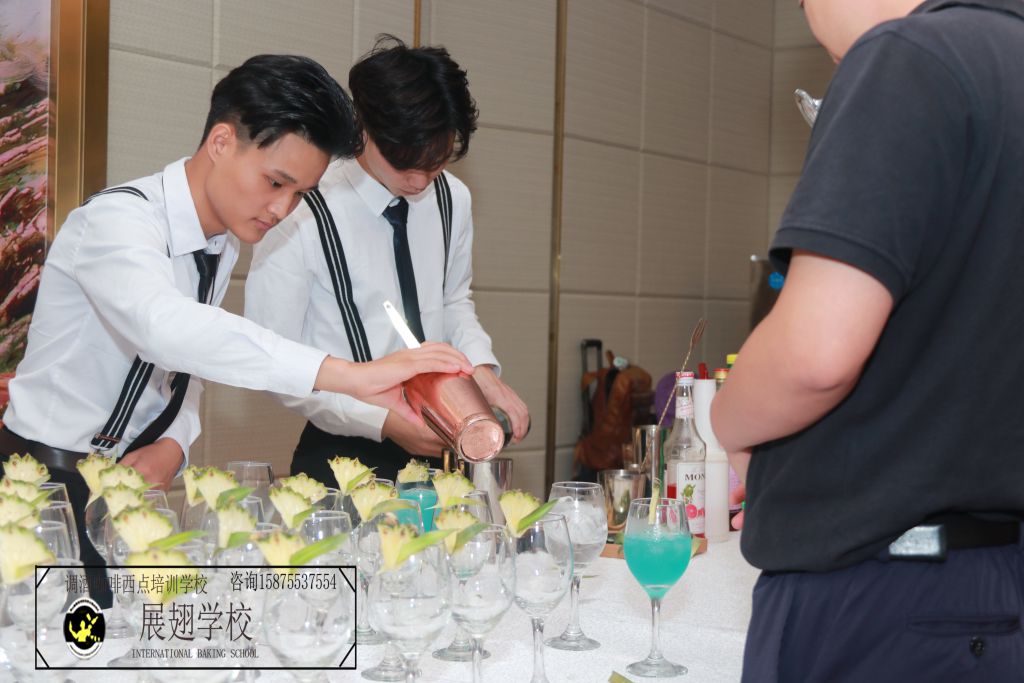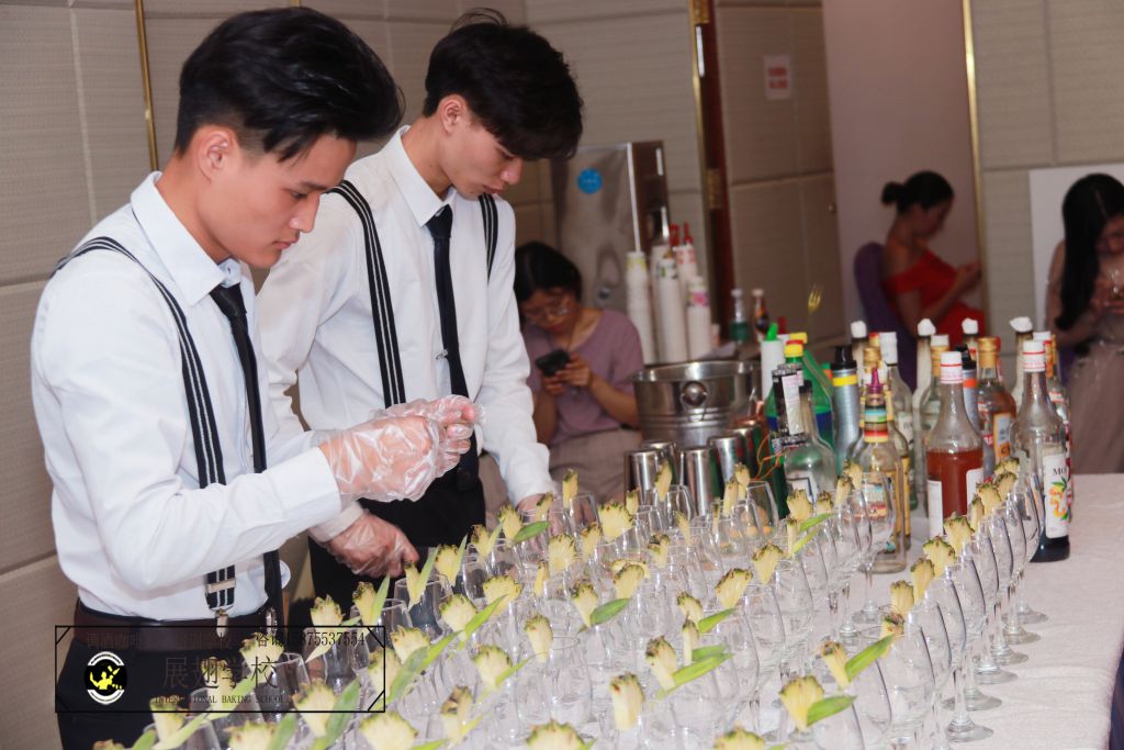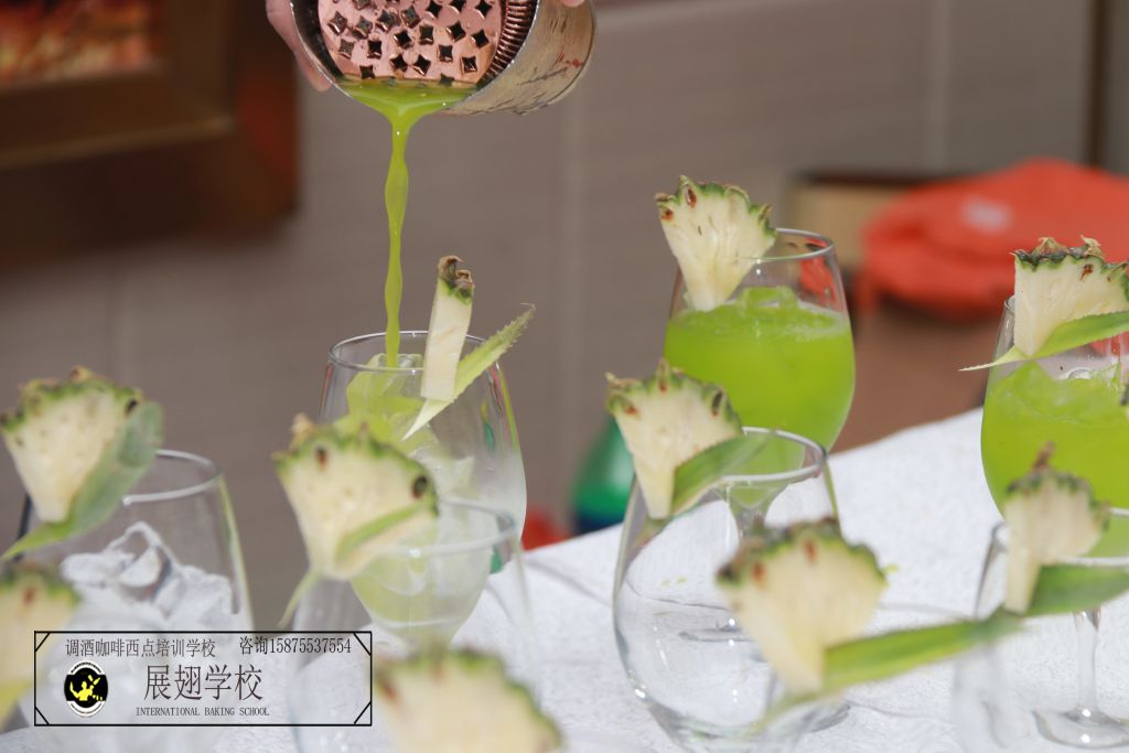 一杯完美的雞尾酒的呈現,顯然需要著極其專業的調酒技巧,比如選擇基酒與輔助酒,并要對選取的量要準確無誤,而對酒杯菠蘿裝飾的制作,則需要很高的效率與沉著穩重的心,一是求快,二是快而能出讓人滿意的質量,這也是為什么佛山展翅咖啡調酒西點學校的調酒師學員屢屢受邀為多種地產商會、新品發布會等等高端場所提供雞尾酒的原因。由此可見,展翅學校畢業的調酒師在職場上所向披靡,創下一個個調酒行業的奇跡,其背后的培養水準得到高評價也絕非虛言。