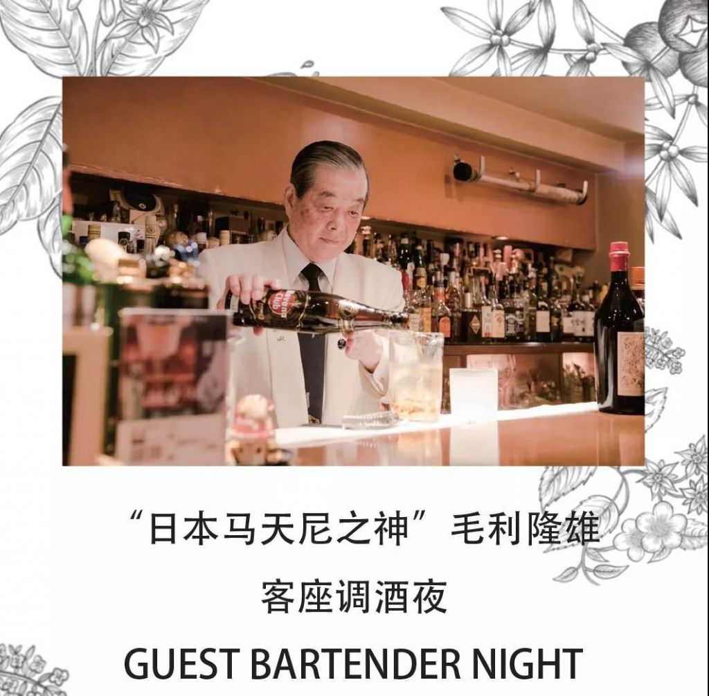 SUZU BAR 開業活動 日本"馬天尼之神"毛利隆雄客調之夜 SUZU BAR,這家剛剛開業的日式酒吧與“馬天尼之神”毛利隆雄有著相當深厚的淵源。店長兼主調鈴木俊矢師從毛利隆雄先生15年,是毛利先生最得意的門生之一。SUZU BAR是毛利先生的愛徒首次來到海外開設的酒吧,毛利先生為了表達對SUZU BAR開業的慶祝,特別帶領另外兩位愛徒且同時是日本冠軍的岡崎ユウ(YUU OKAZAKI)、新井加采(ARAI KANA)一起到上海,參加本次開業特別客調活動。