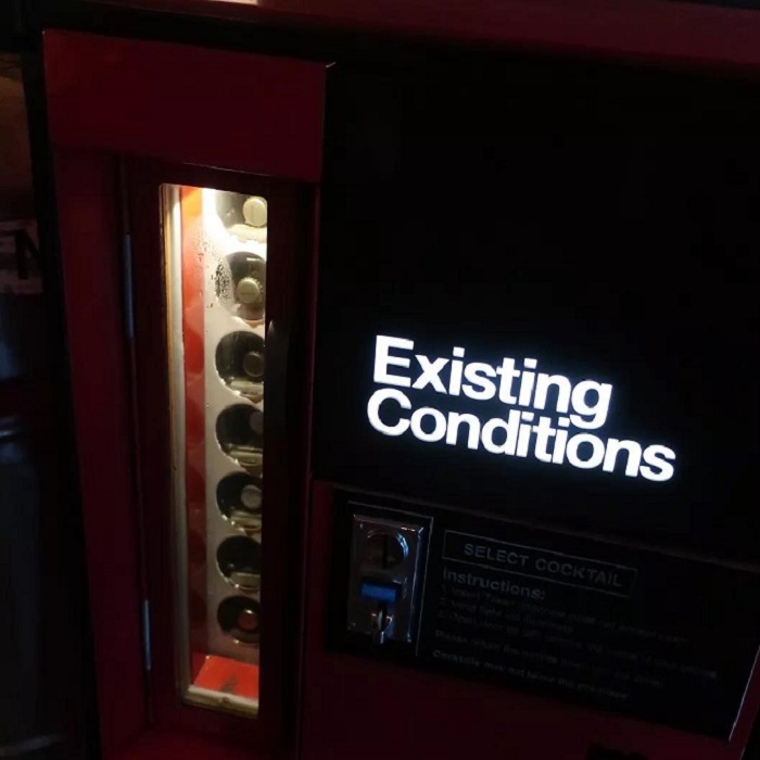 這三瓶雞尾酒分別是曼哈頓,馬天尼和影院嗨棒Cinema Highball(黃油爆米花味朗姆酒加可樂),售價都是15美刀,而這臺瓶裝雞尾酒自動販賣機就矗立在紐約新近開張的一間新酒吧里——Existing Conditions,簡稱EC,而很多人因為這臺雞尾酒自動販賣機而專程前去打卡。