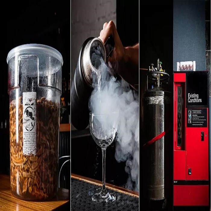 EC的許多雞尾酒都會使用訂制的設備進行充氣,然而充入的并不是碳酸氣,而是氮氣。因為根據戴夫和李的研究,氮氣會讓雞尾酒的氣泡更為細膩并且還能帶來一絲甜味。