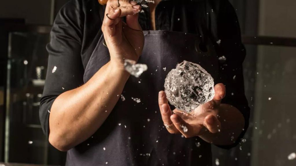 除開品酒本身,消費(fèi)者也會欣賞整個調(diào)酒過程。如果一個調(diào)酒師帶著他巨大的熱情,在吧臺前為顧客展示冰塊是如何鑿出的,這將會是多么美好的體驗(yàn)啊。