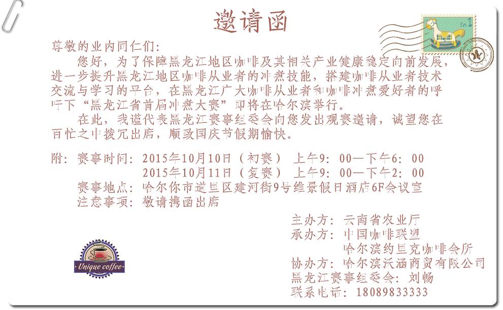 承辦單位:中國咖啡聯(lián)盟、哈爾濱約里克咖啡會所